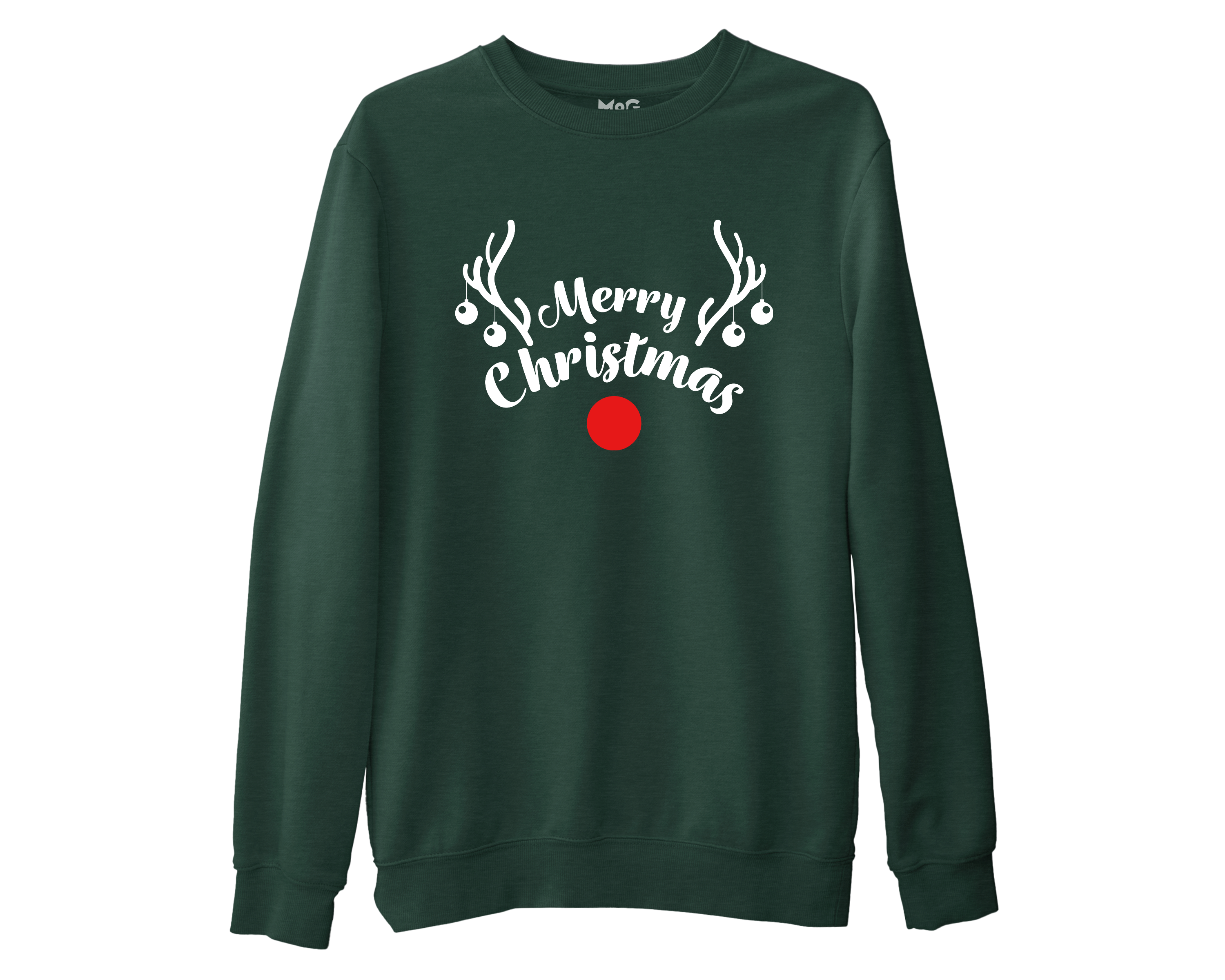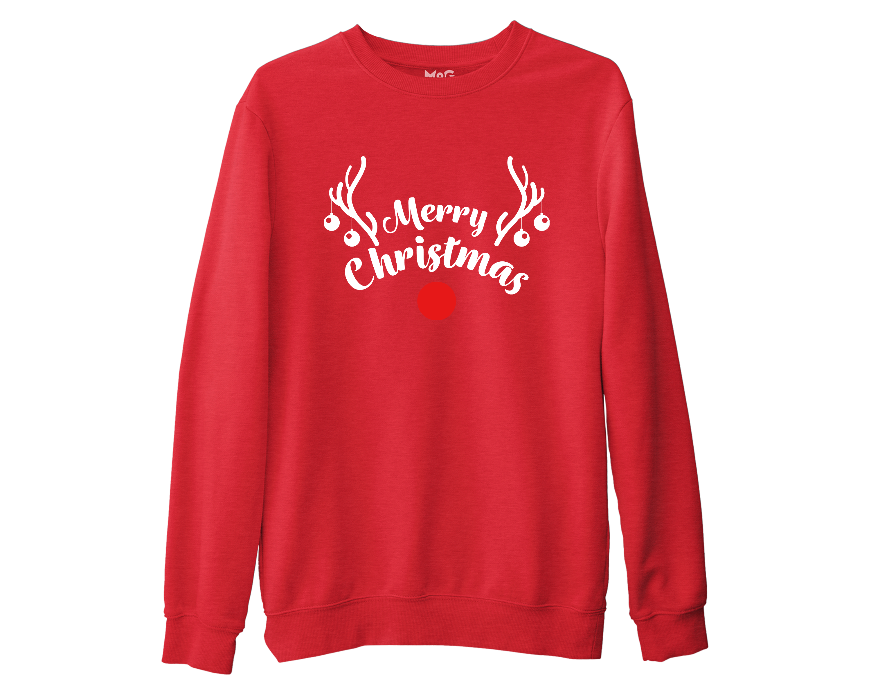 Red Nose Reindeer Sweatshirt Merry Christmas Jumper Santa Rudolph Face Xmas Top