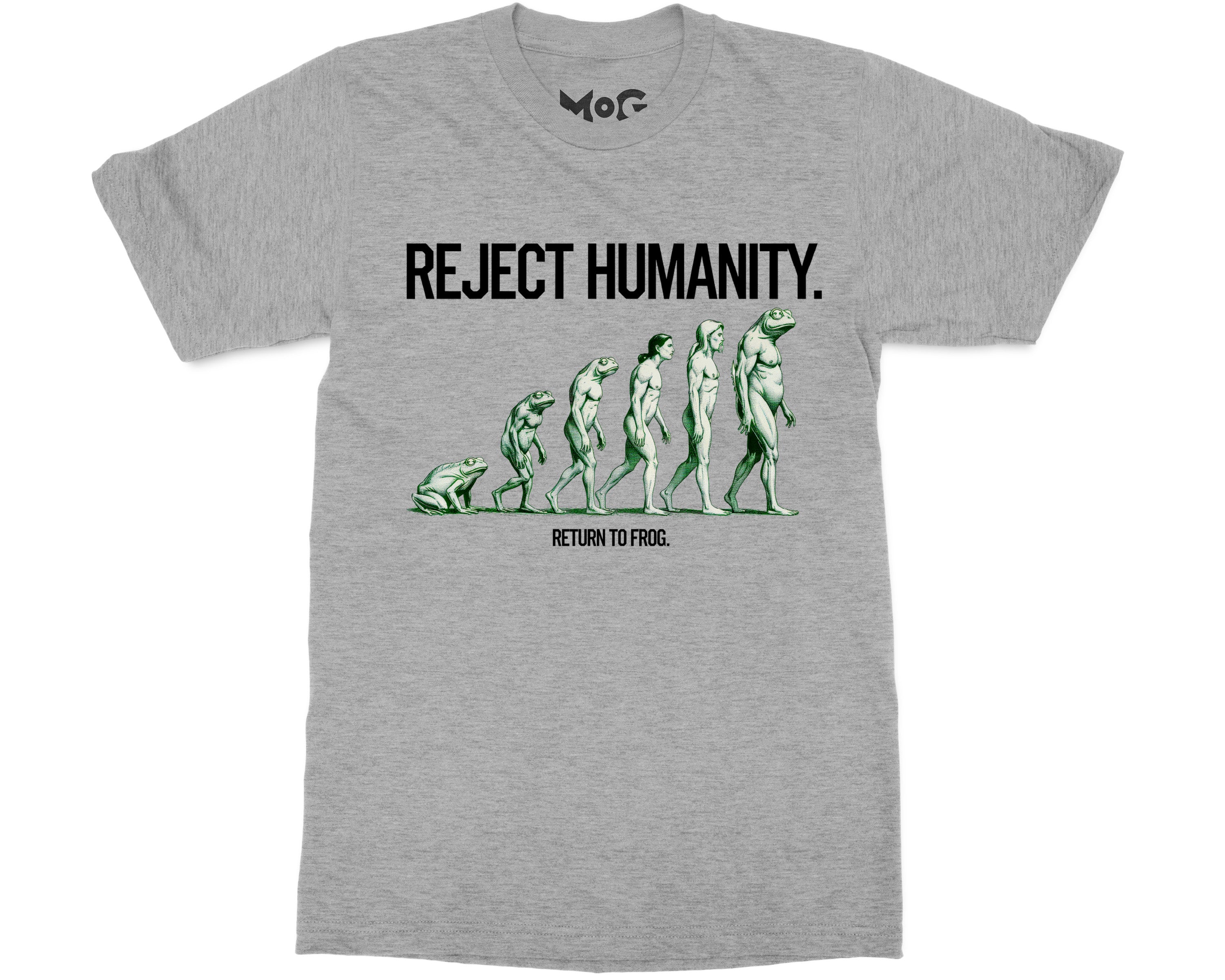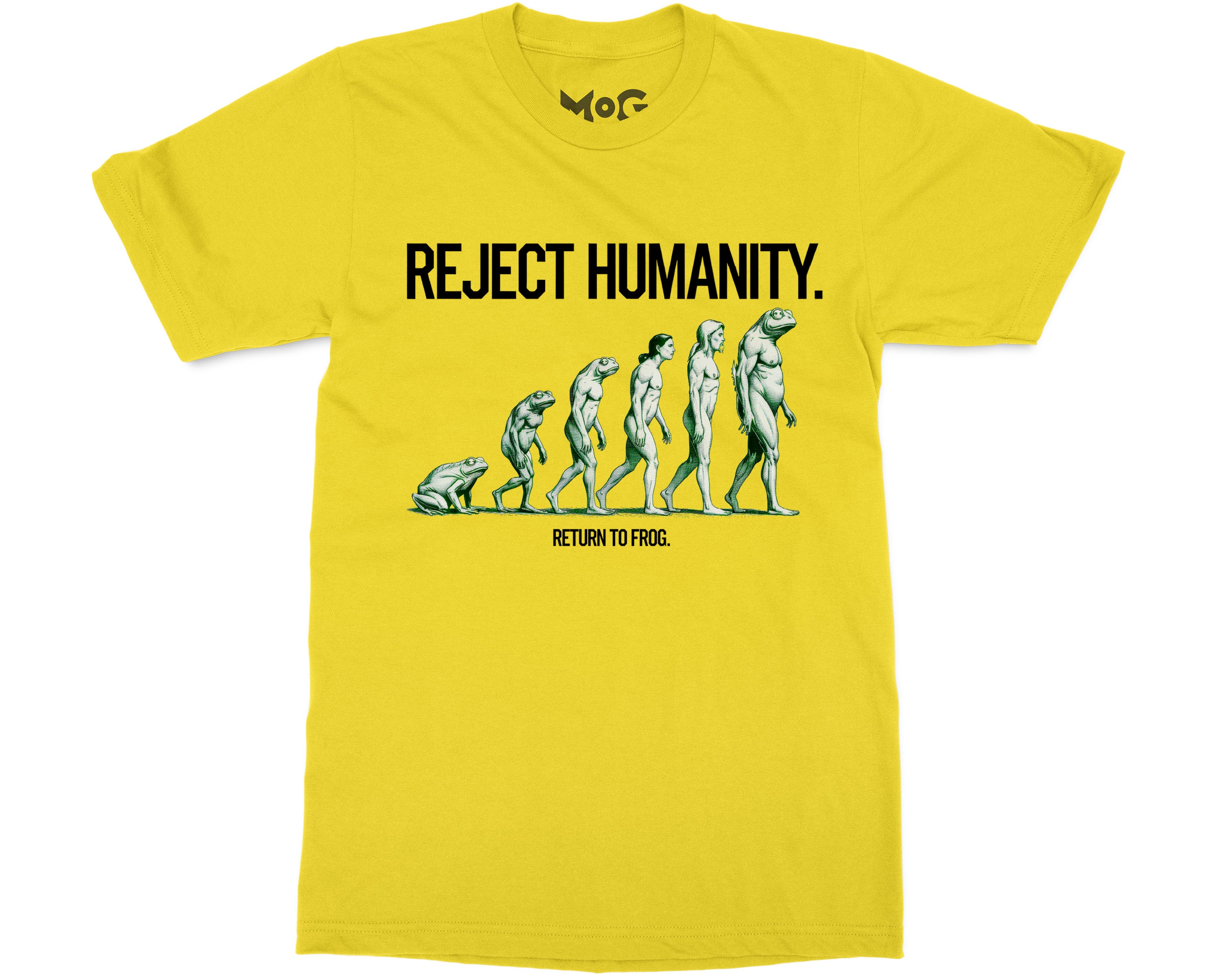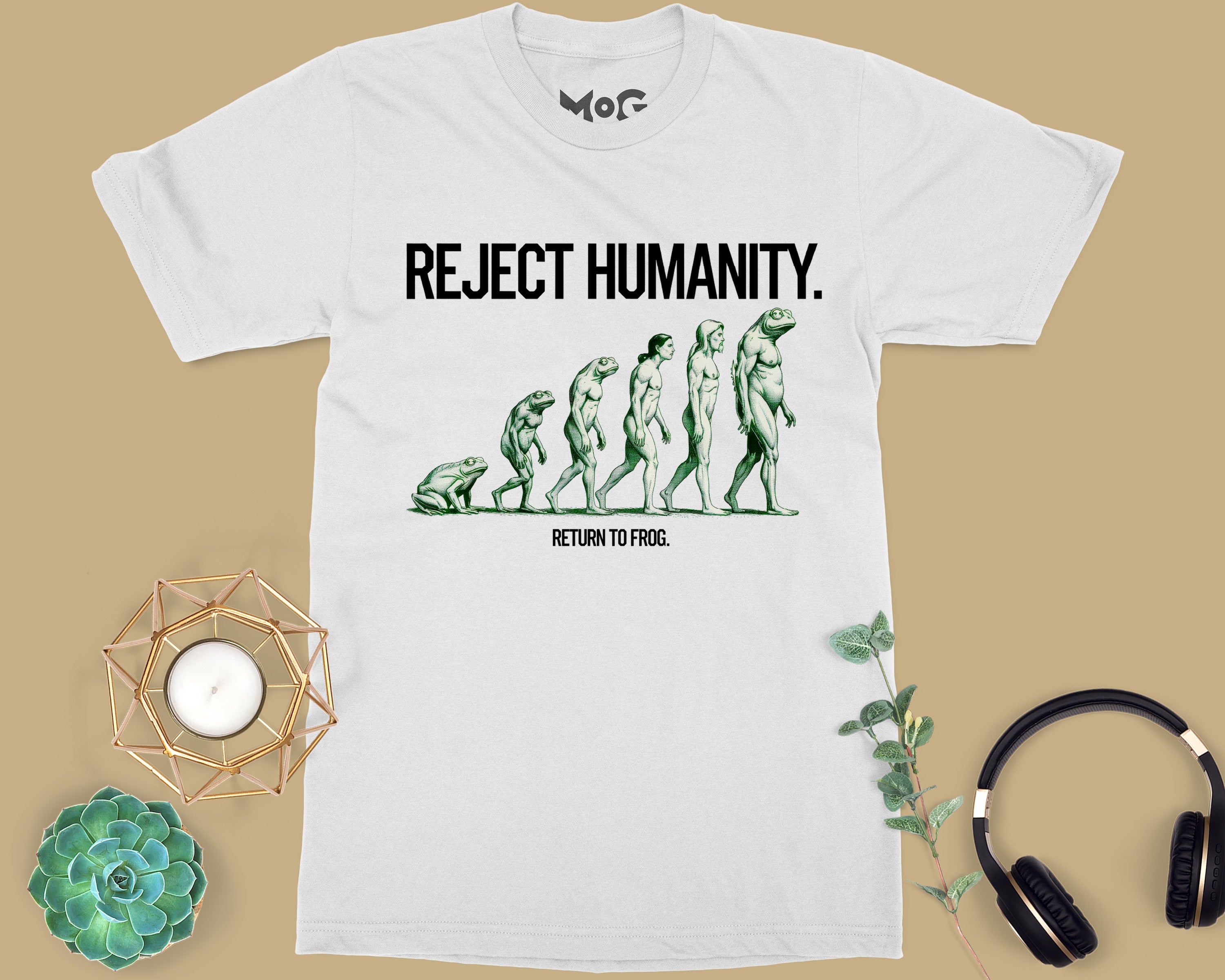 Reject Humanity Joke T-shirt Funny Frog Evolution Meme Nature Gift Tee