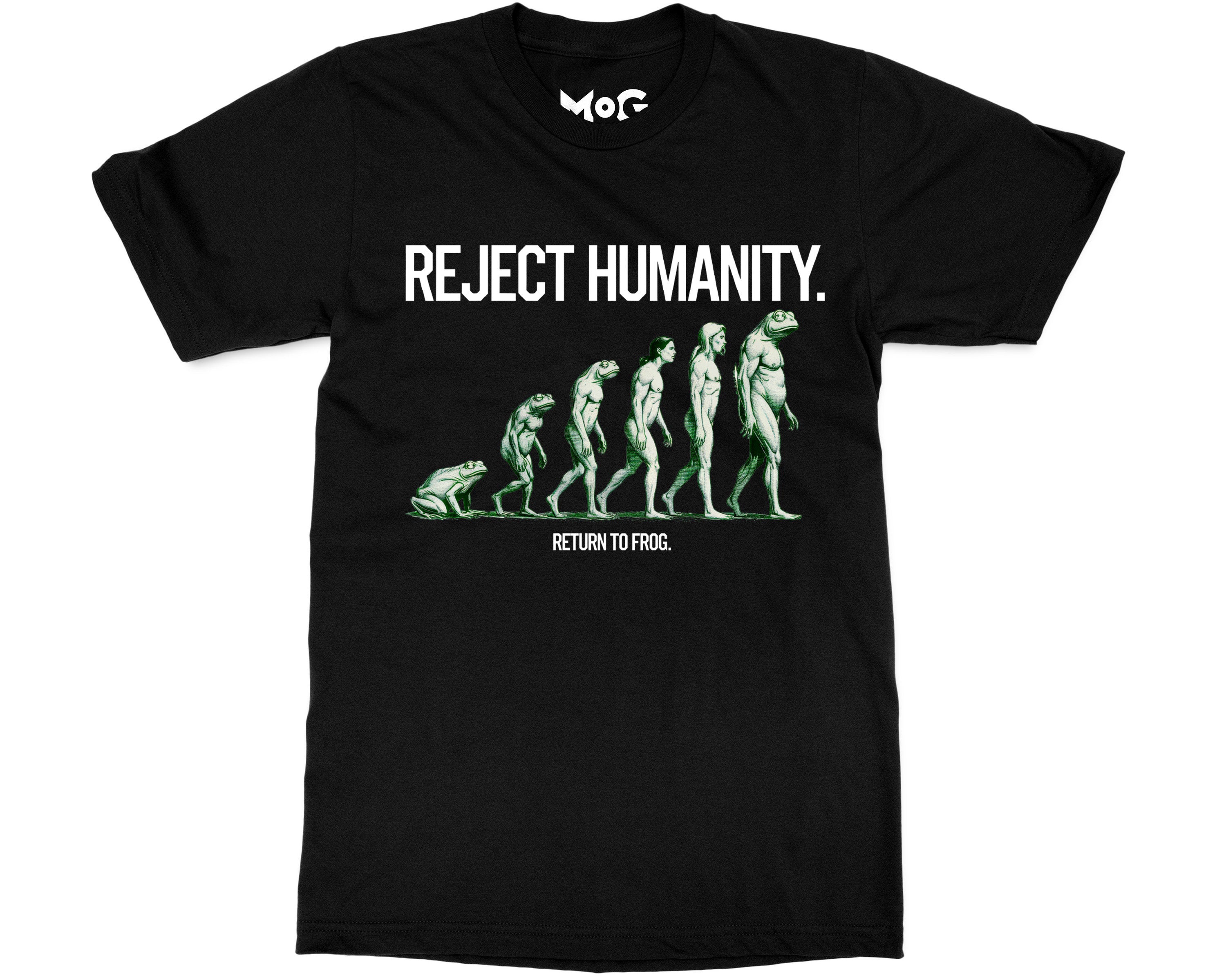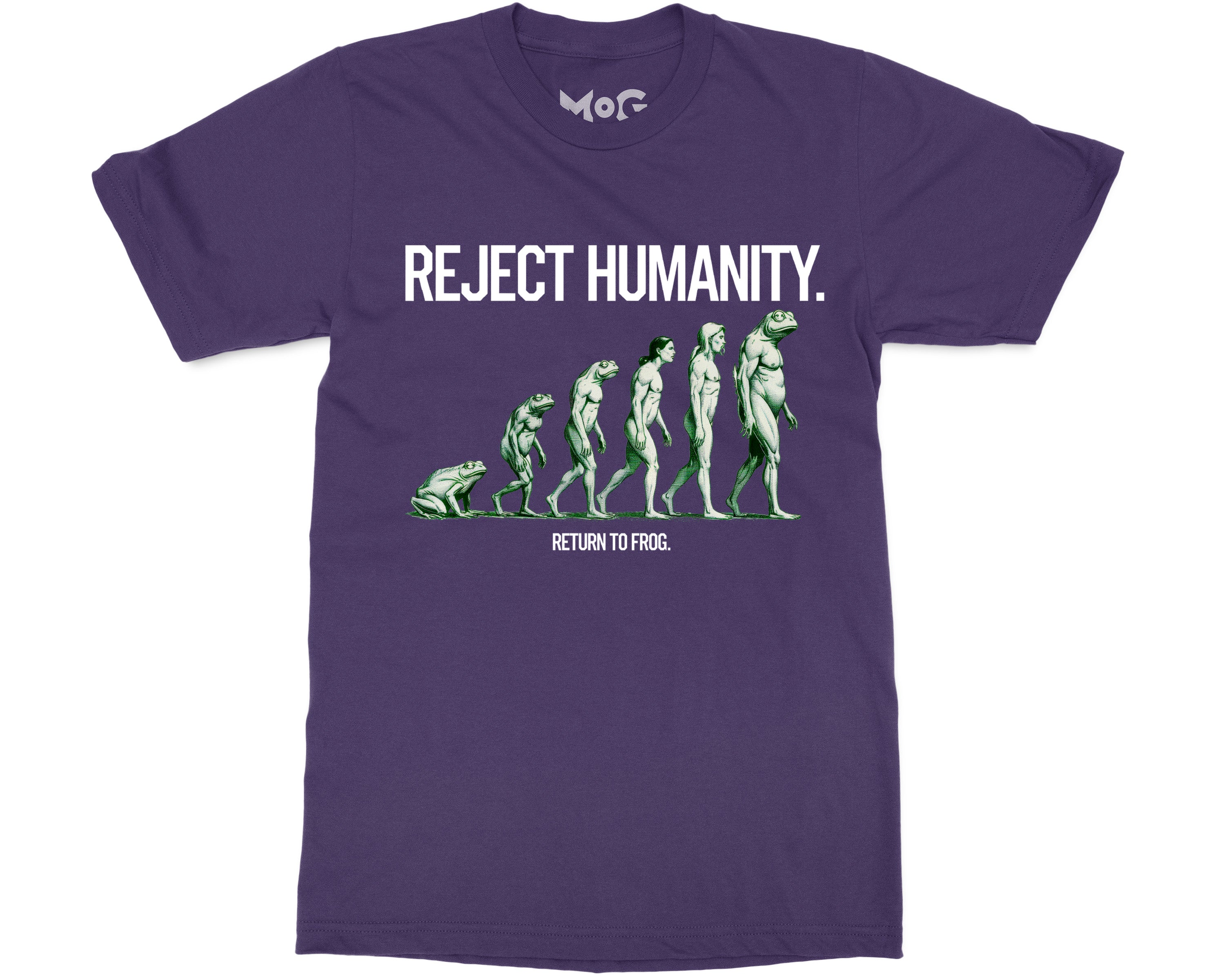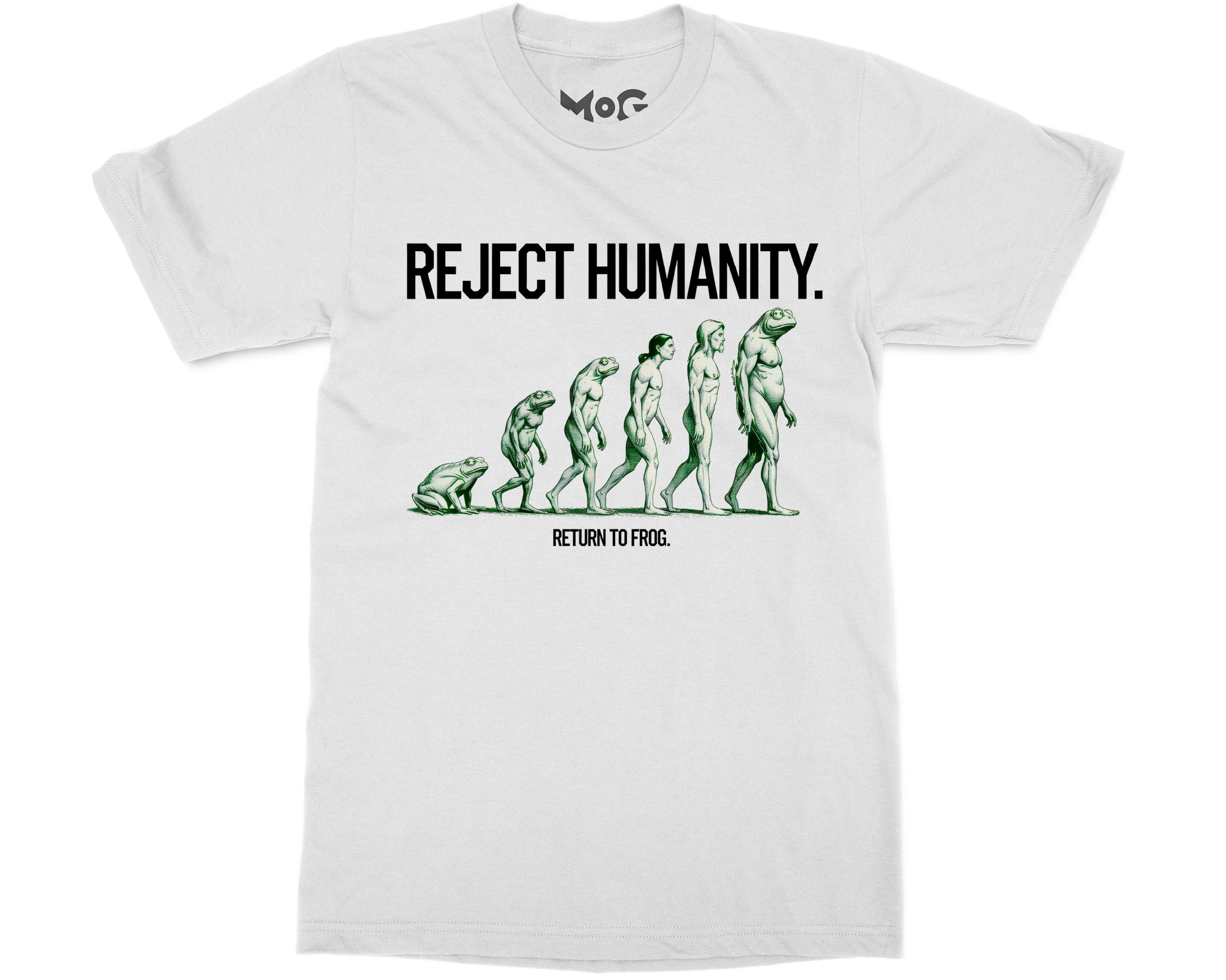 Reject Humanity Joke T-shirt Funny Frog Evolution Meme Nature Gift Tee