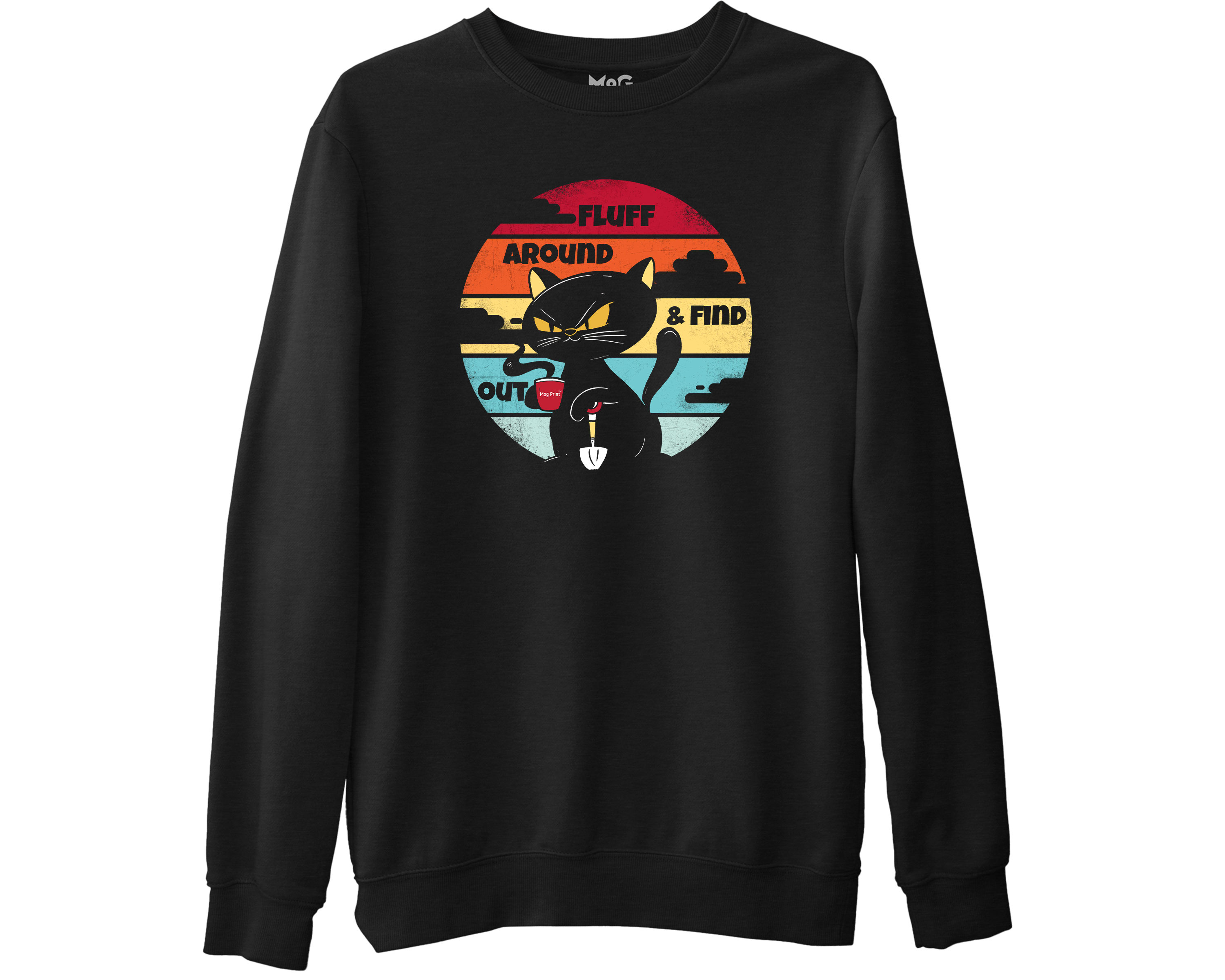 Retro Kitty Sunset Sweatshirt Funny Coffee Cat Joke Around Gift Jumper