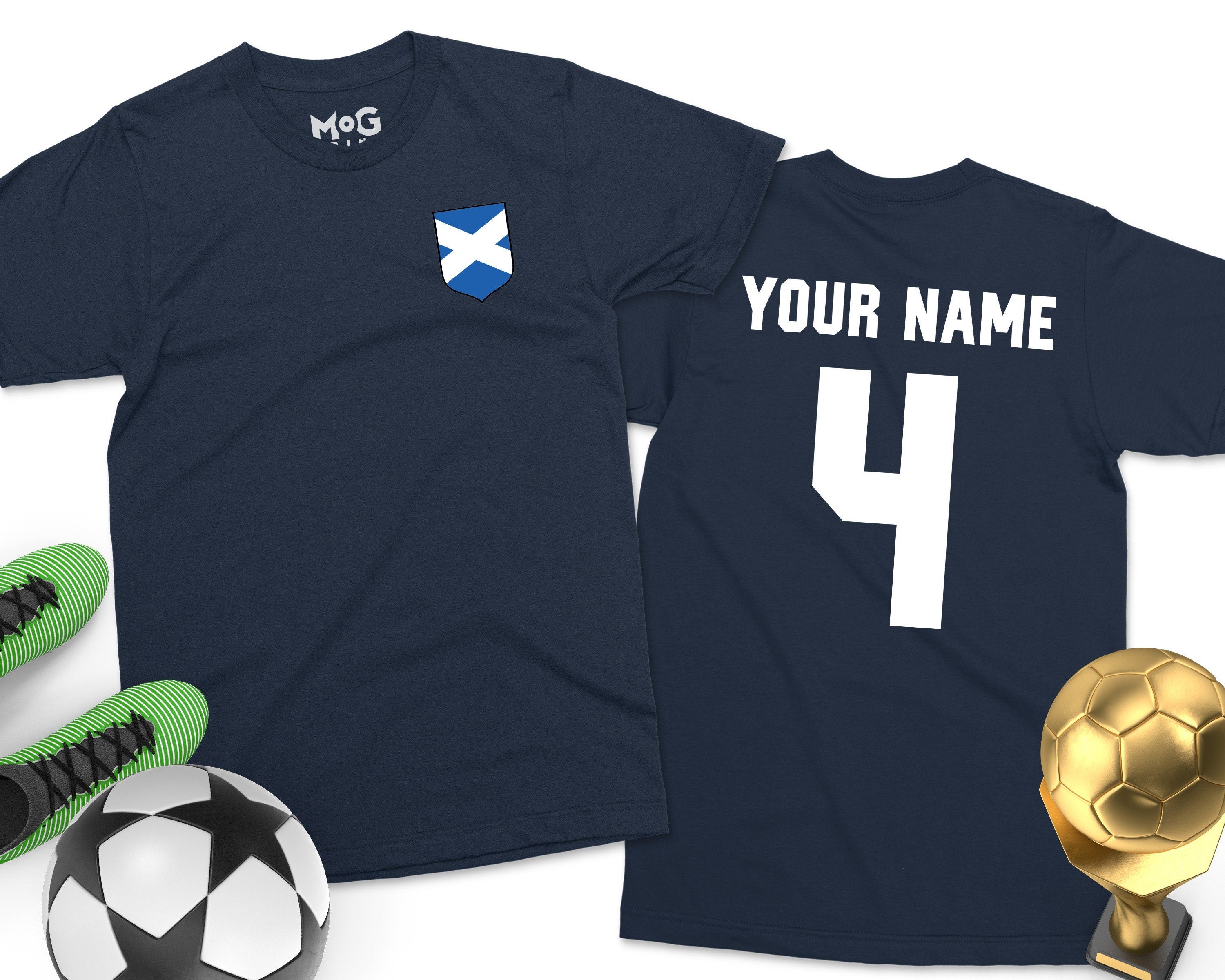Scotland Football T-shirt Scottish Soccer Personalised Name Sport Tee