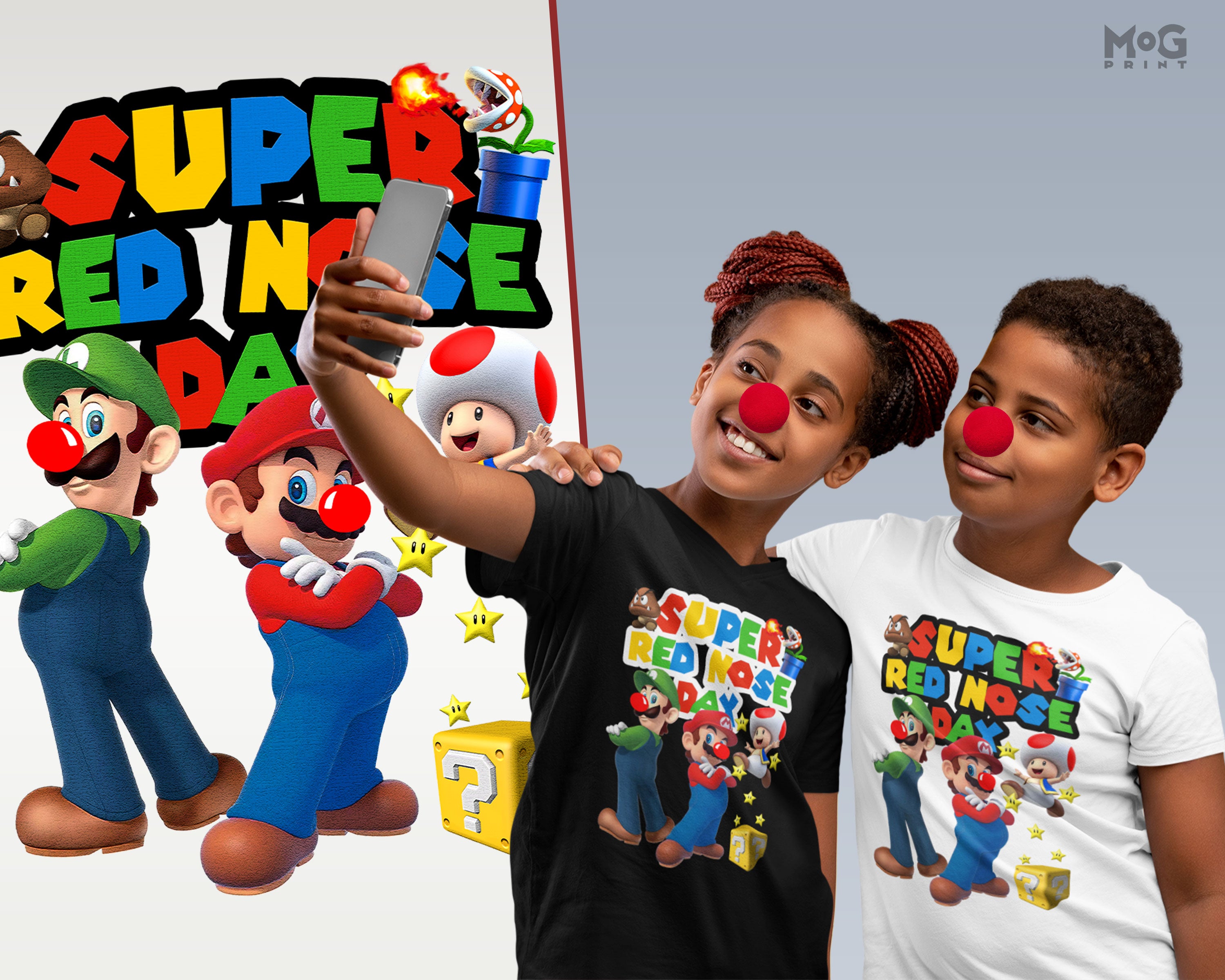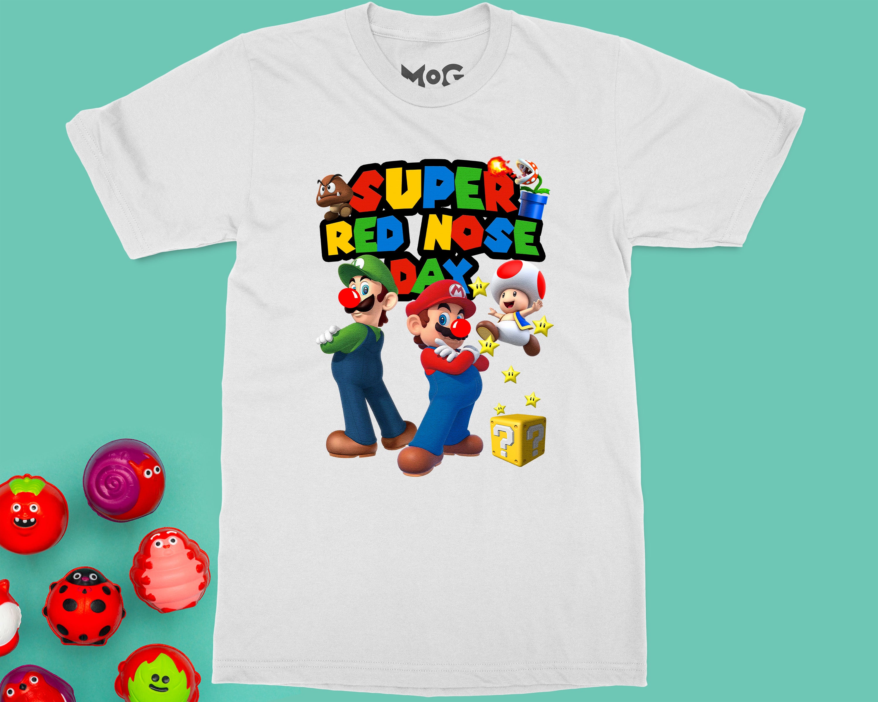 Super Mario Red Nose Day 2026 T-shirt Gamer Parents Kids Costume Top