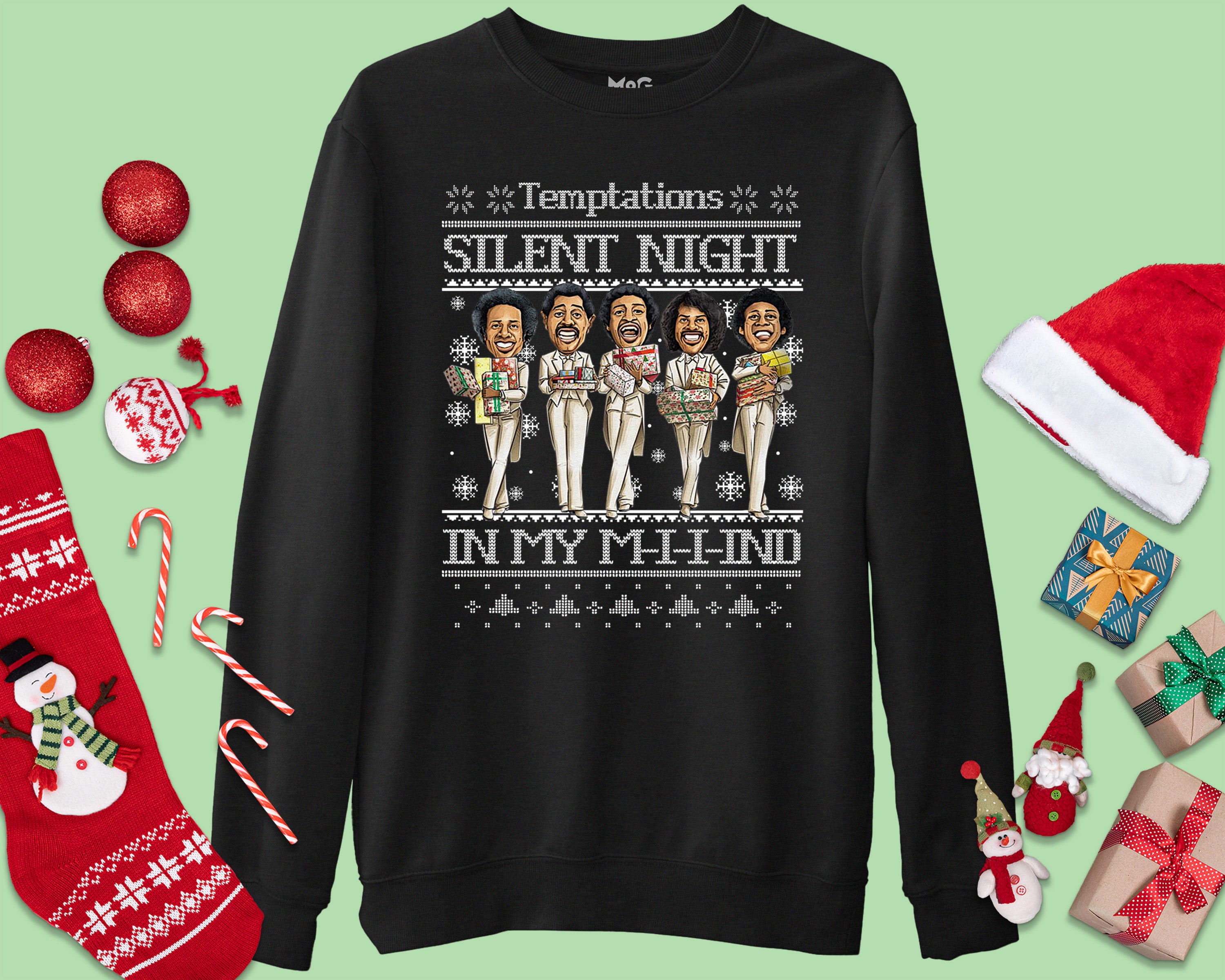 Ugly Christmas Carol Joke Silent Night Sweater Funny Temptations Band Meme Jumper