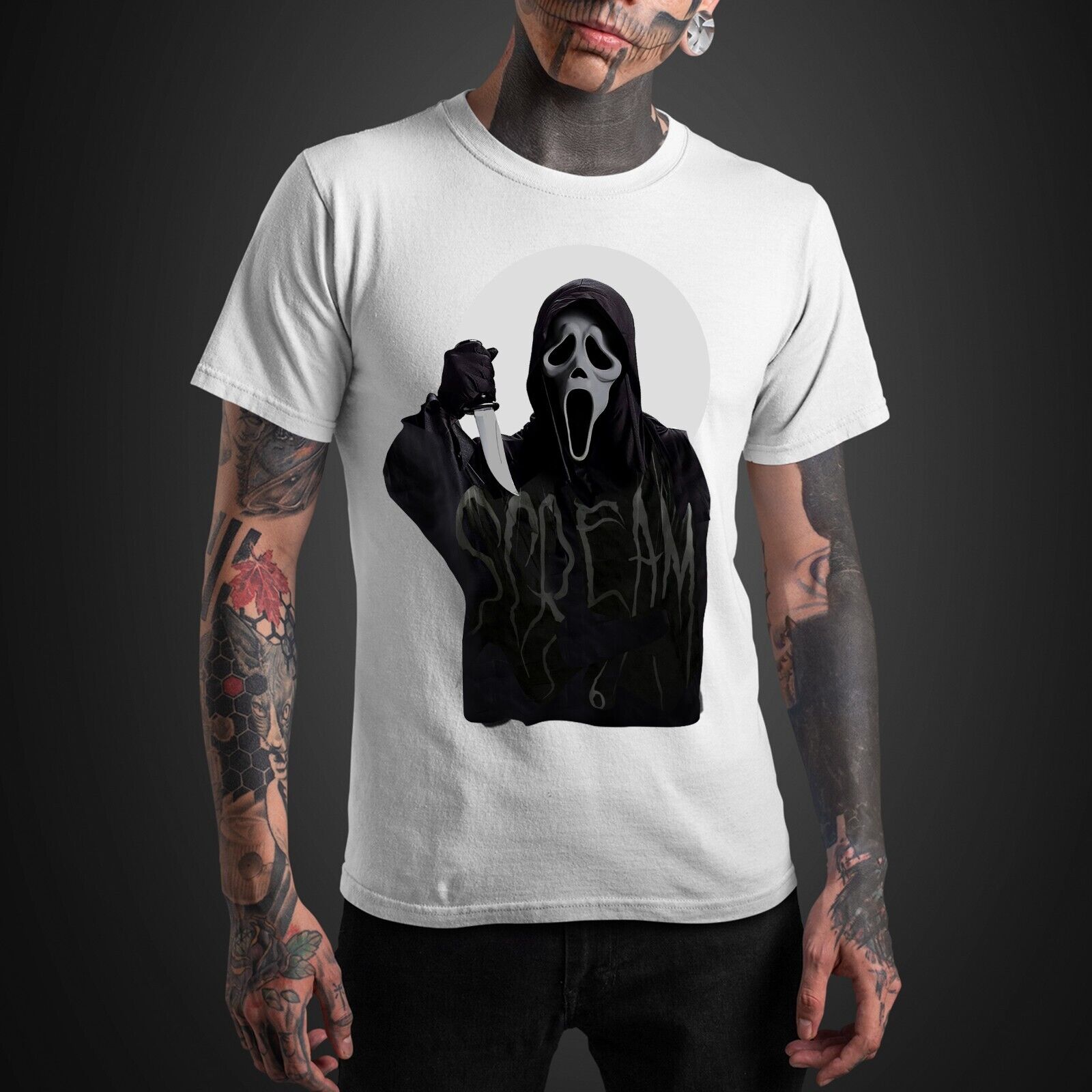 Vintage Halloween T-shirt Ghost Face Horror Movie Spooky Scary Outfit Costume
