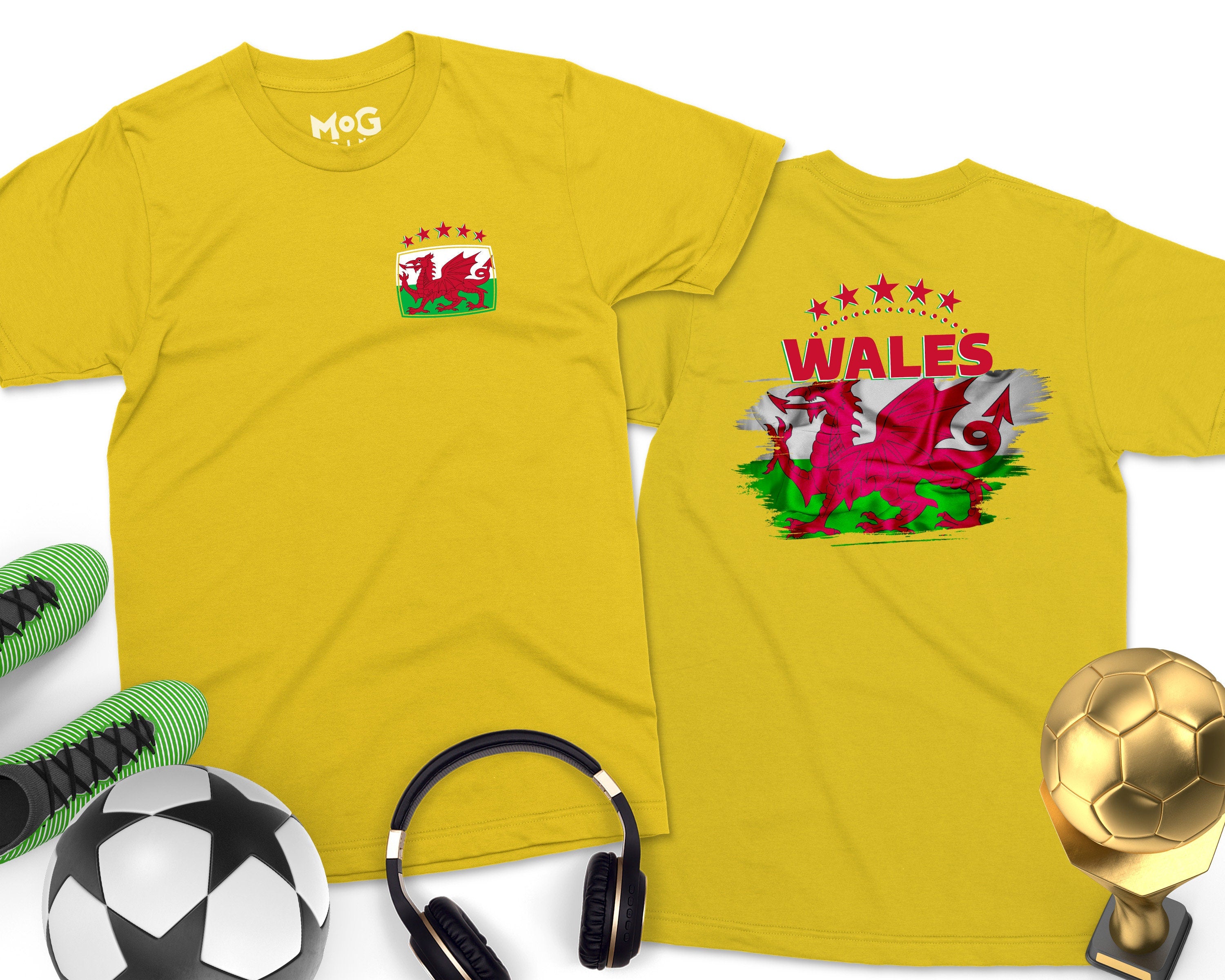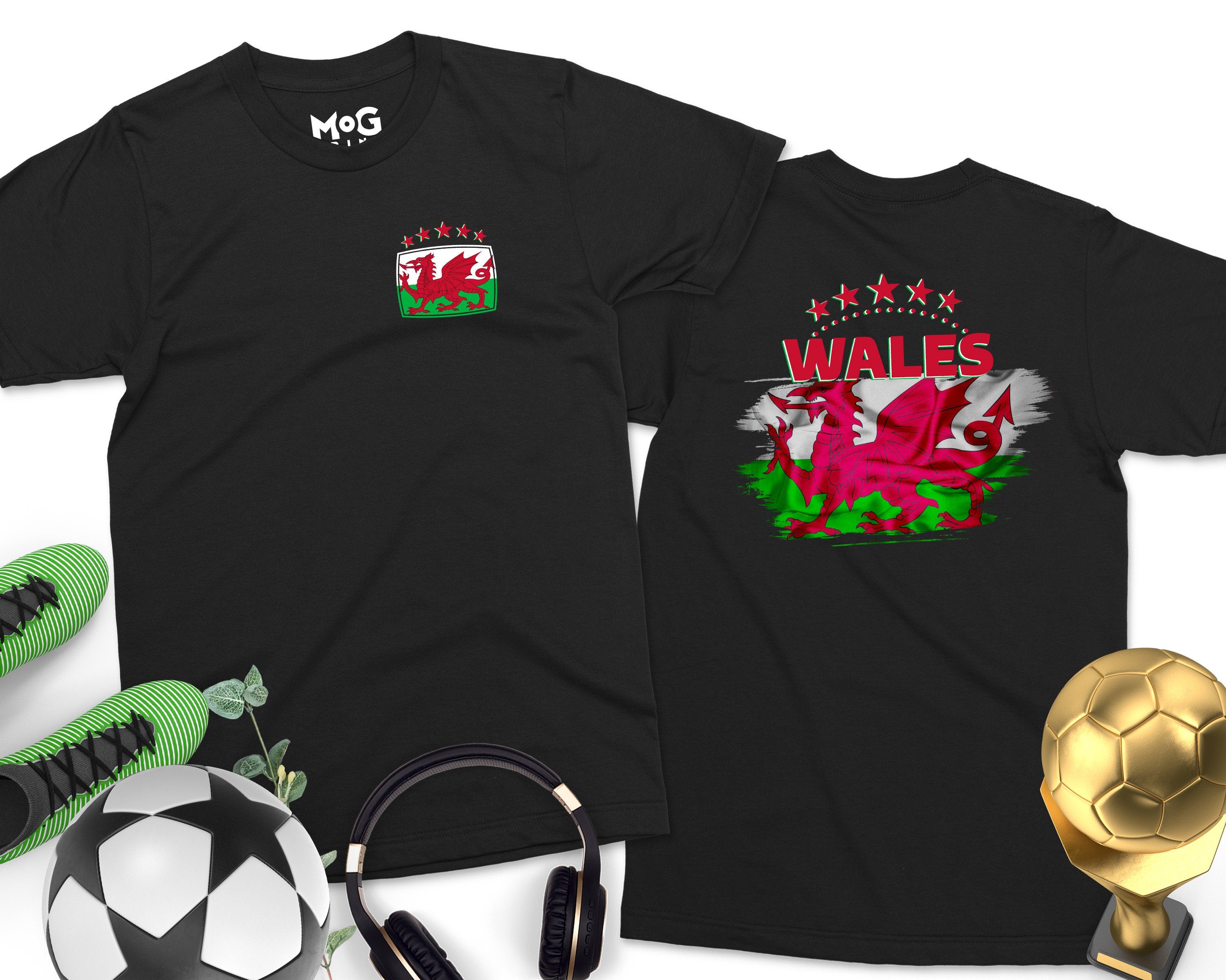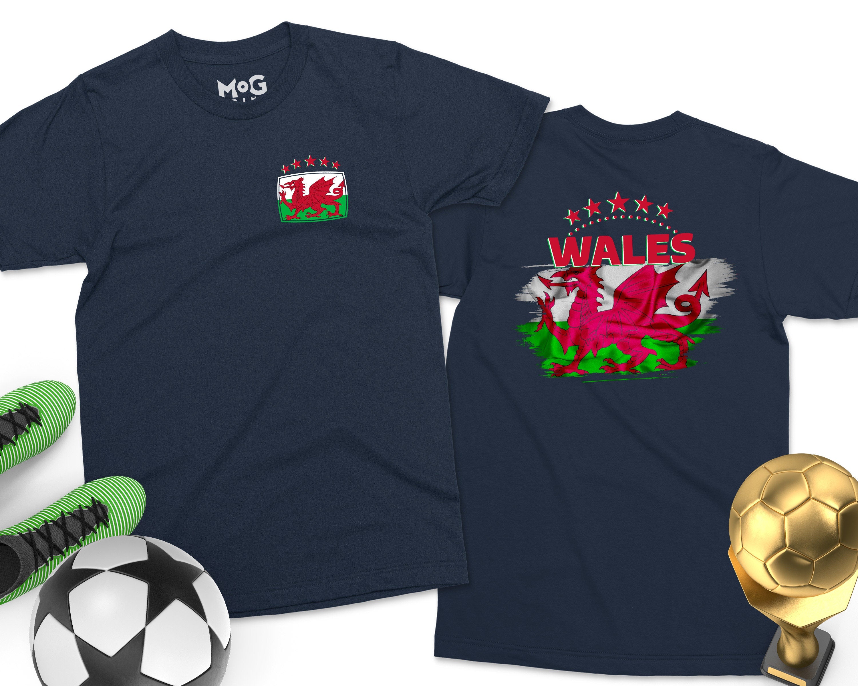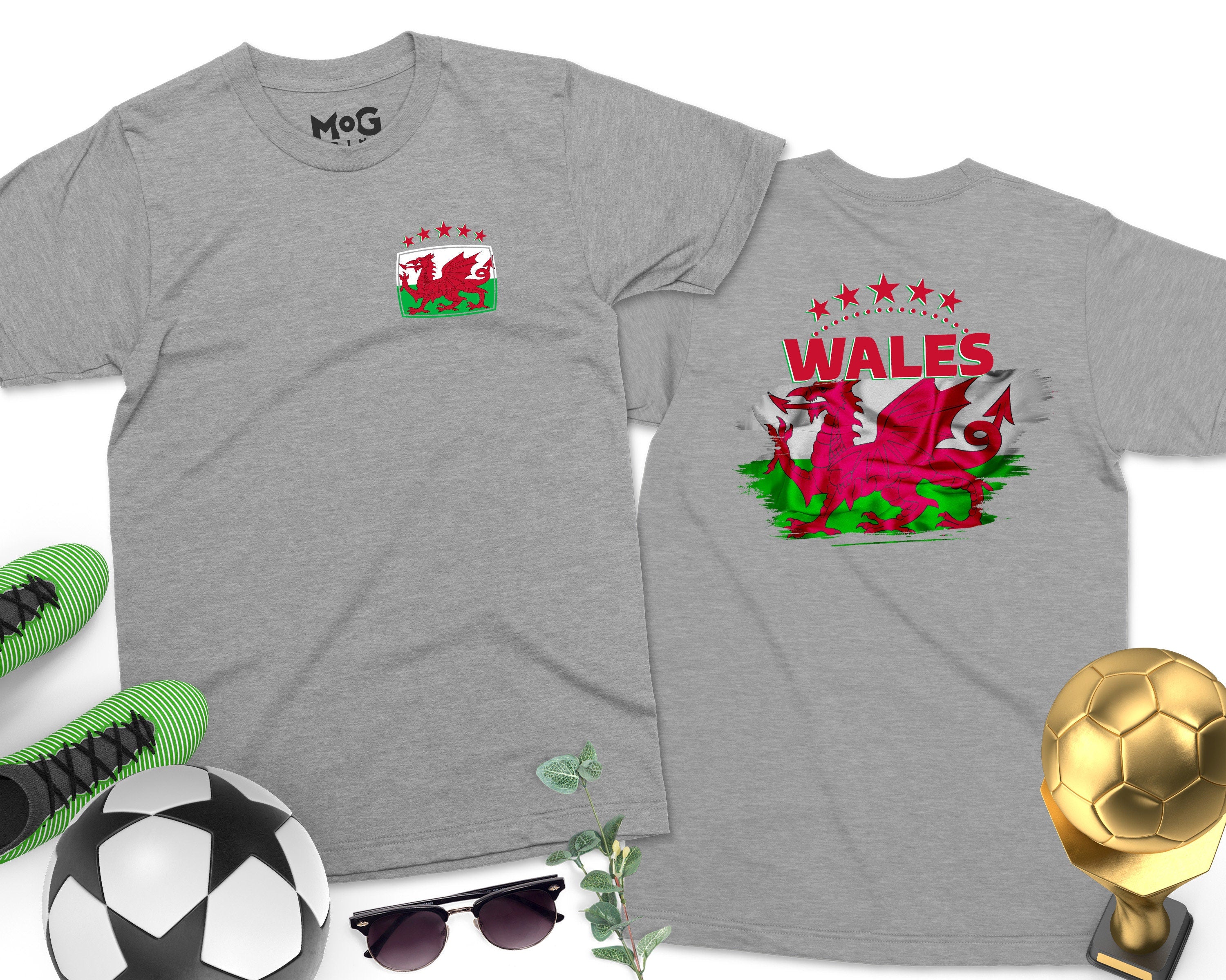Wales Football T-Shirt Cymru Welsh Flag Soccer Team Support Jersey Top