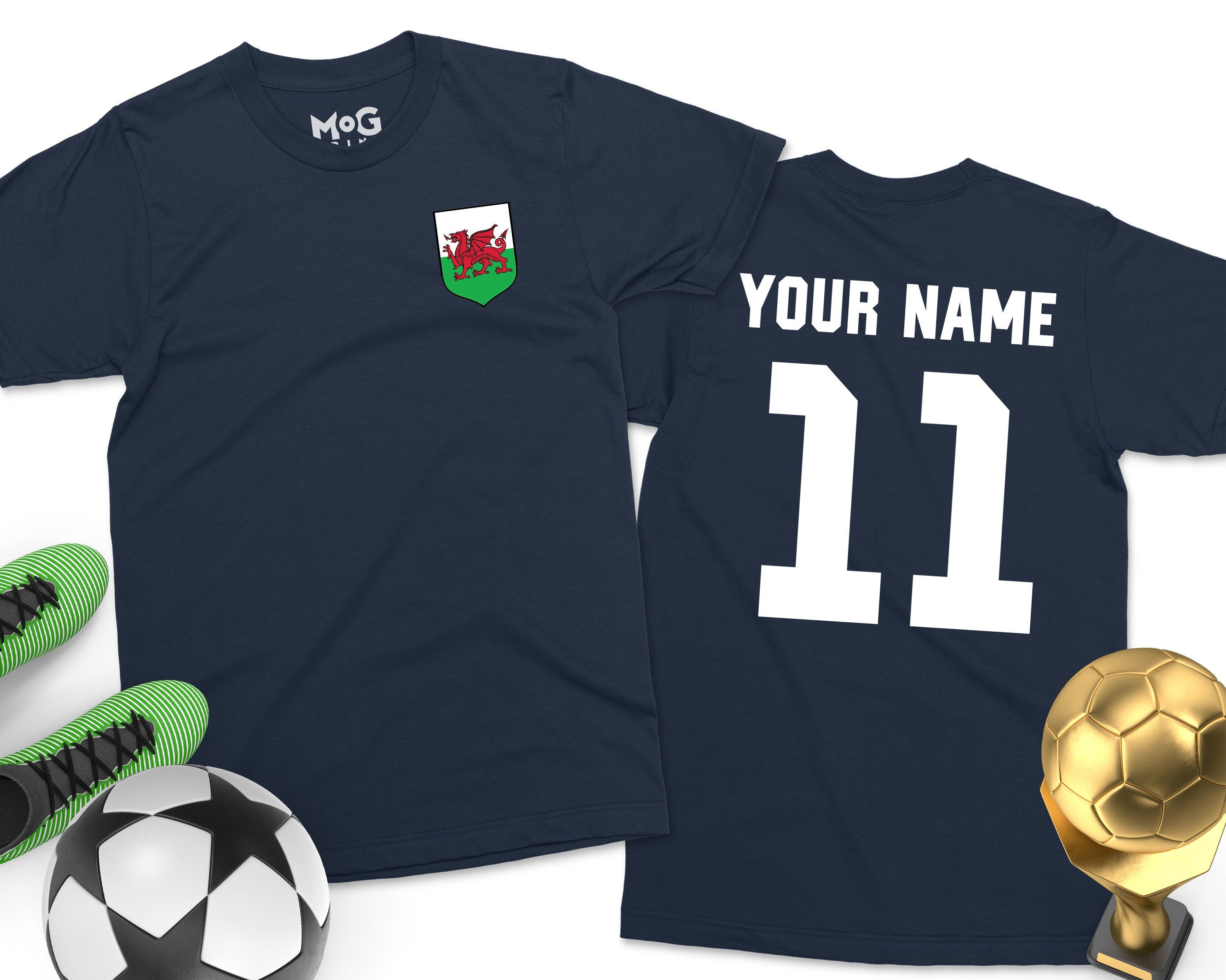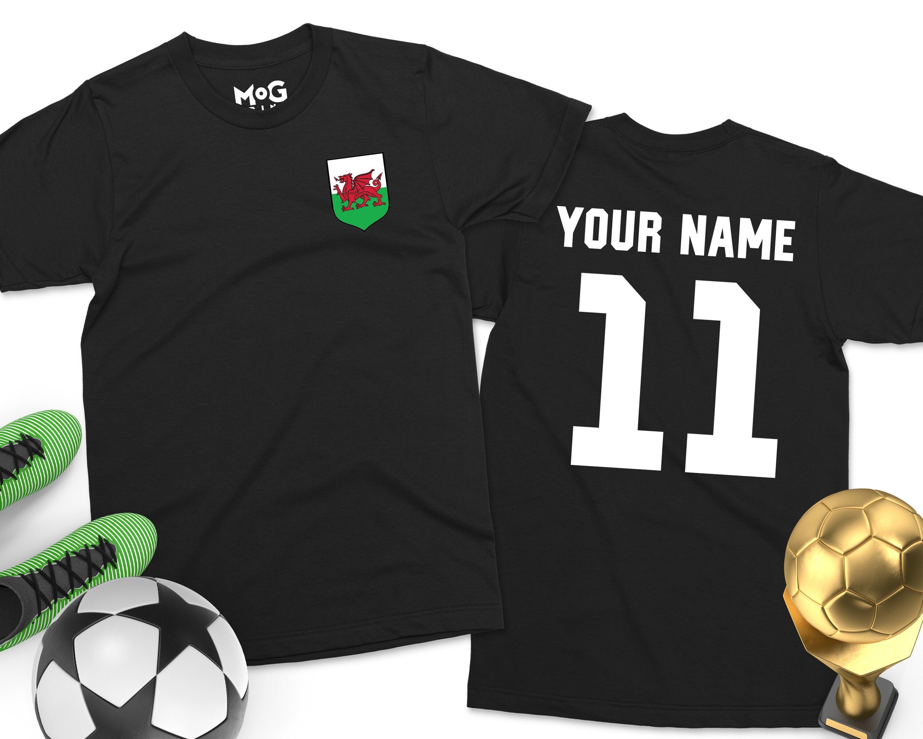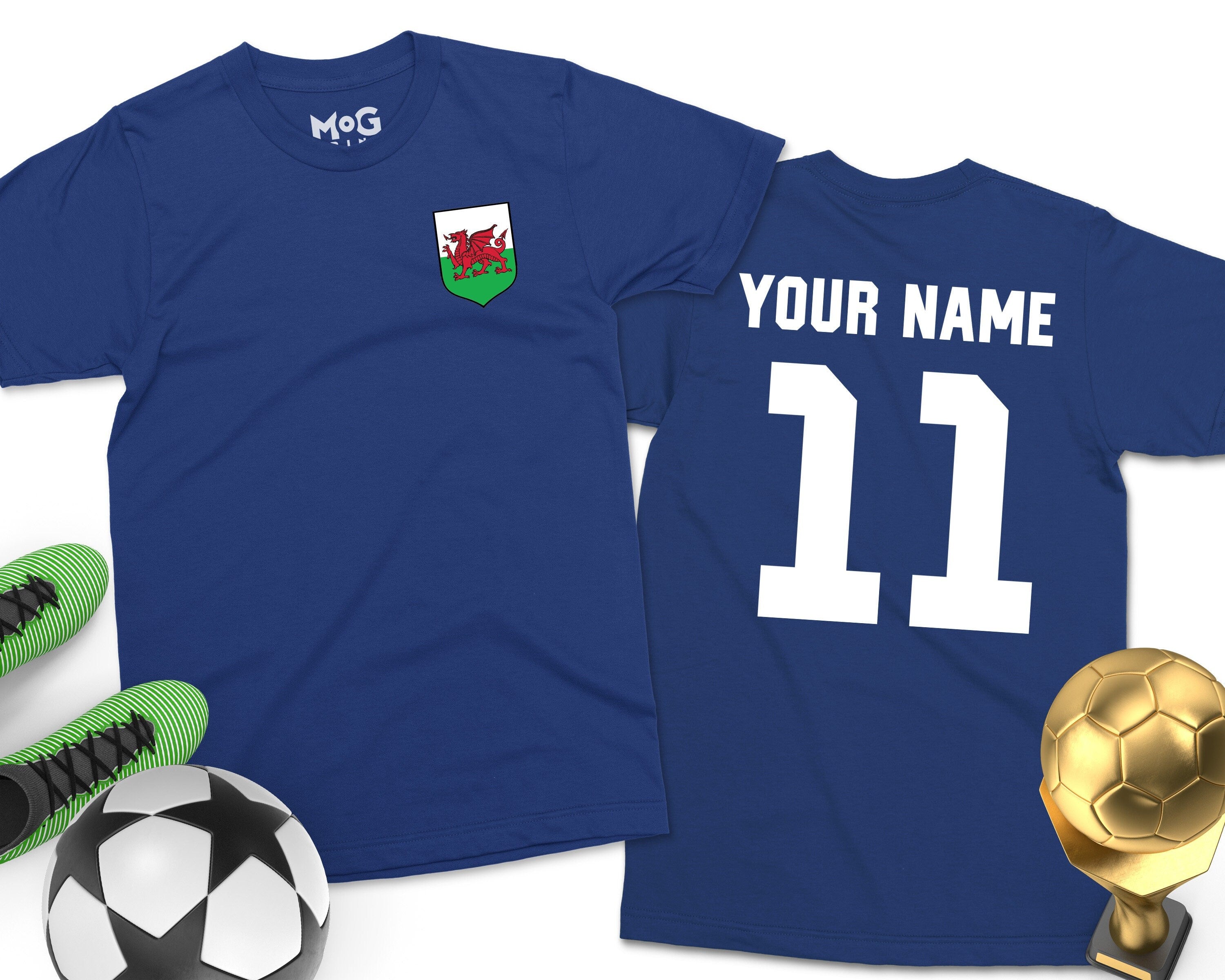 Wales Football T-shirt Welsh Flag Soccer Personalised Name Tee