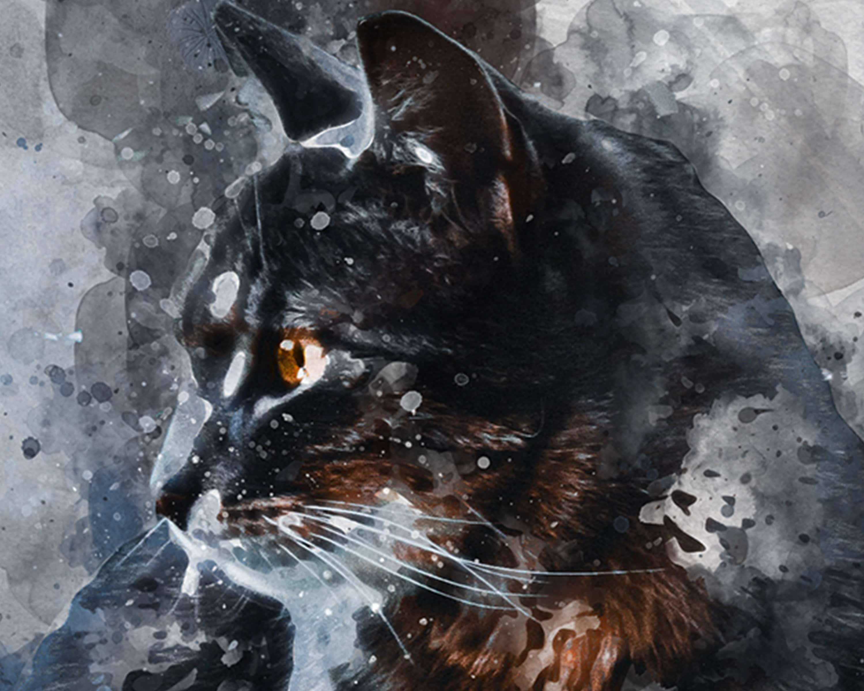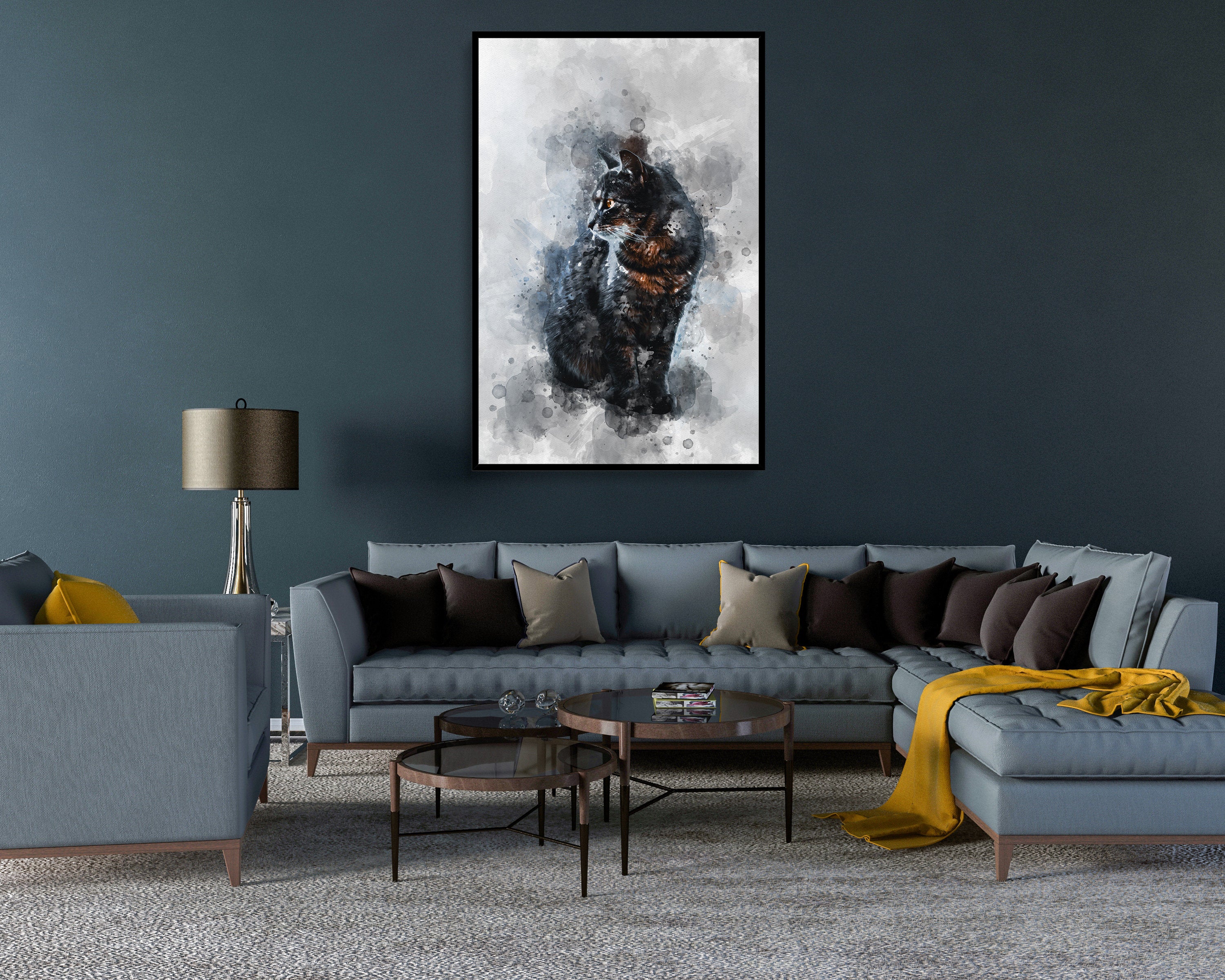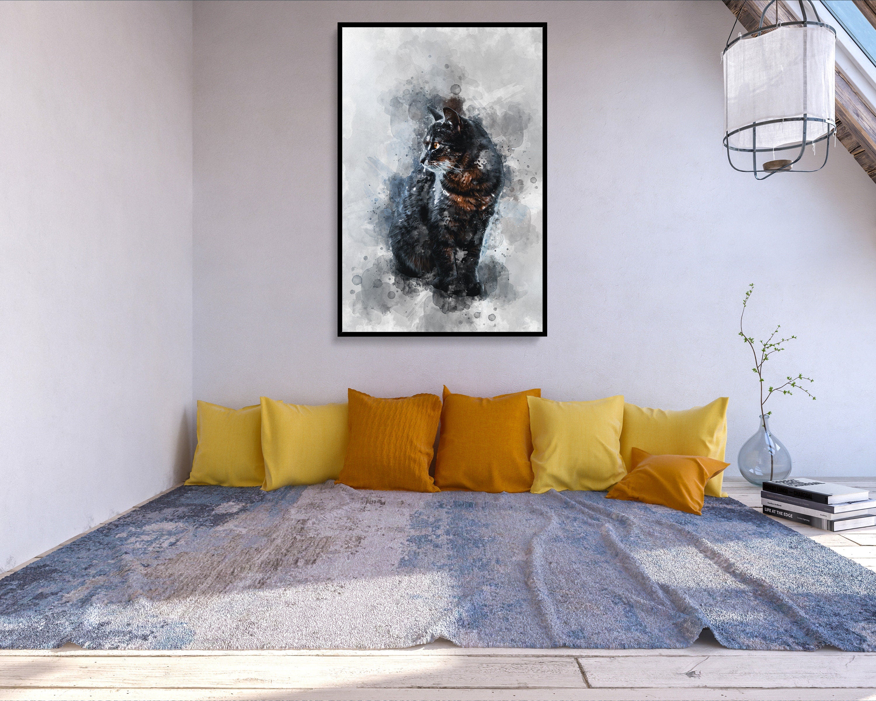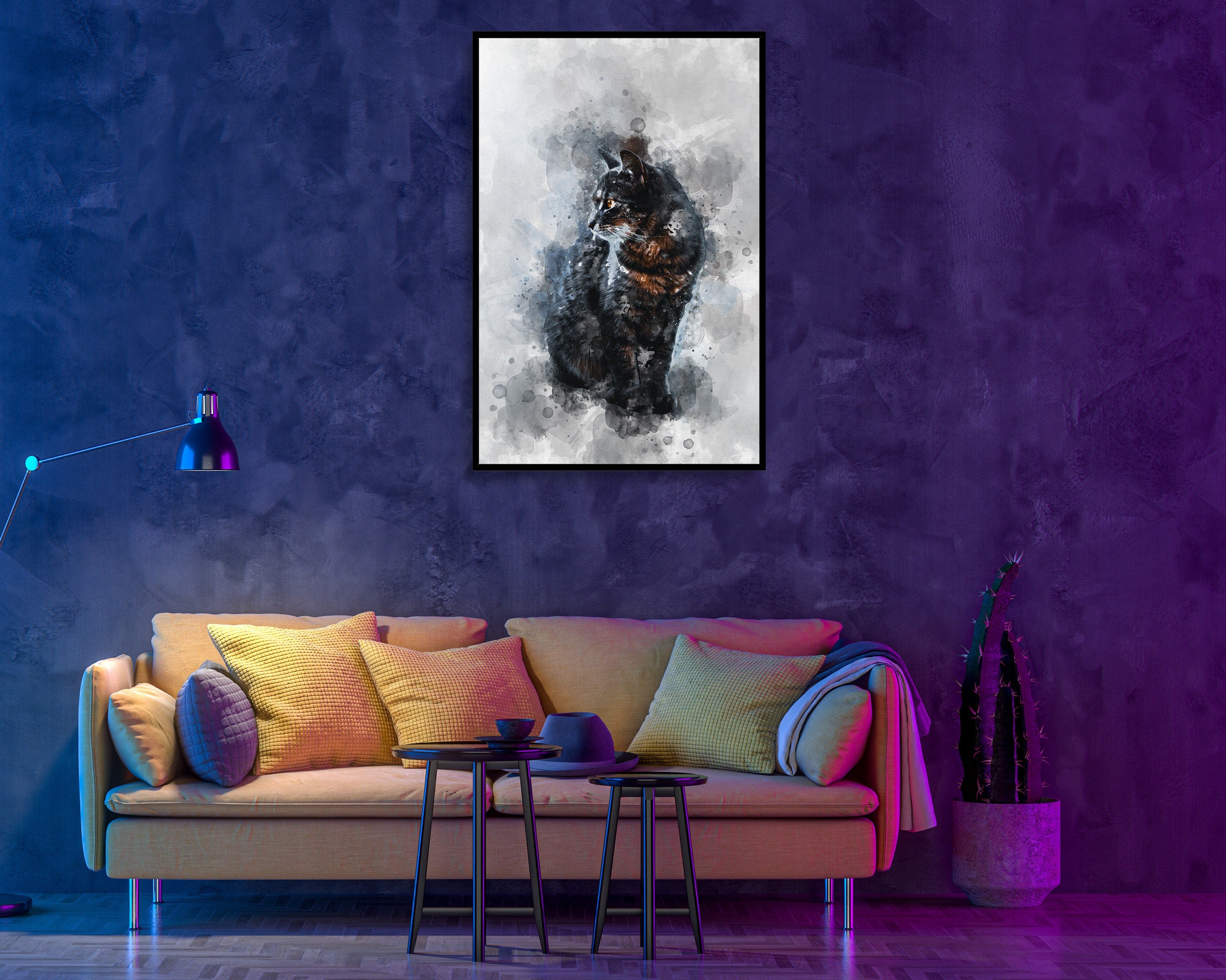Design:> Made by spe3dy productions, one of a kind. Material:> Satin premium poster material 220 GSM / Mimaki original Eco Solv-Inks Art:> Real Cat mixed with water Art, unique and different.