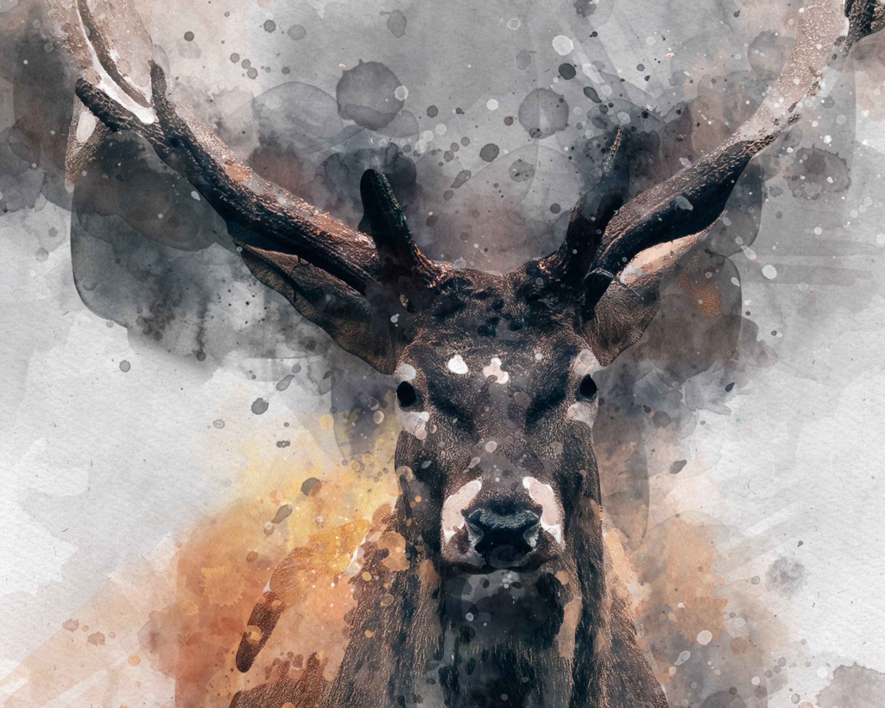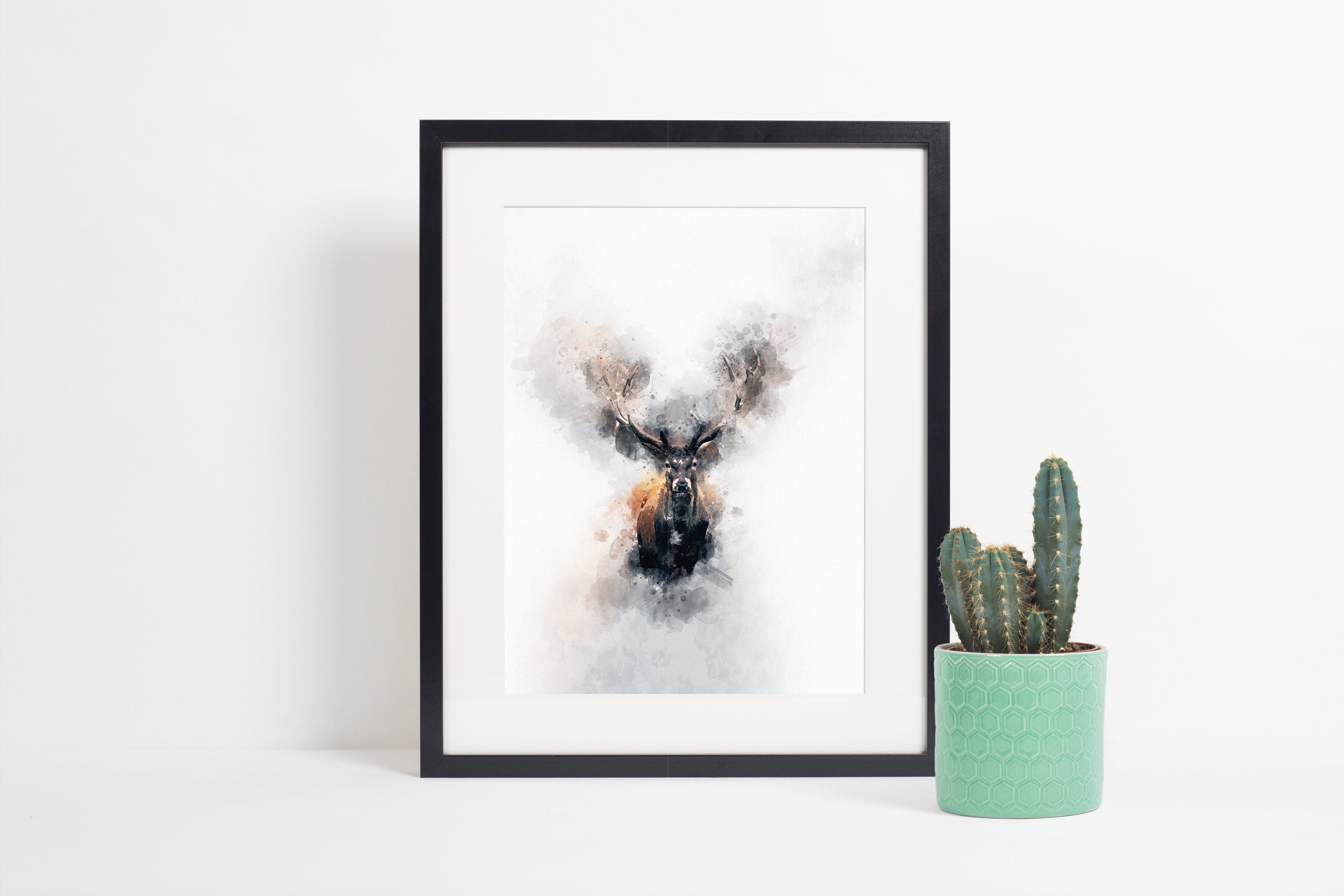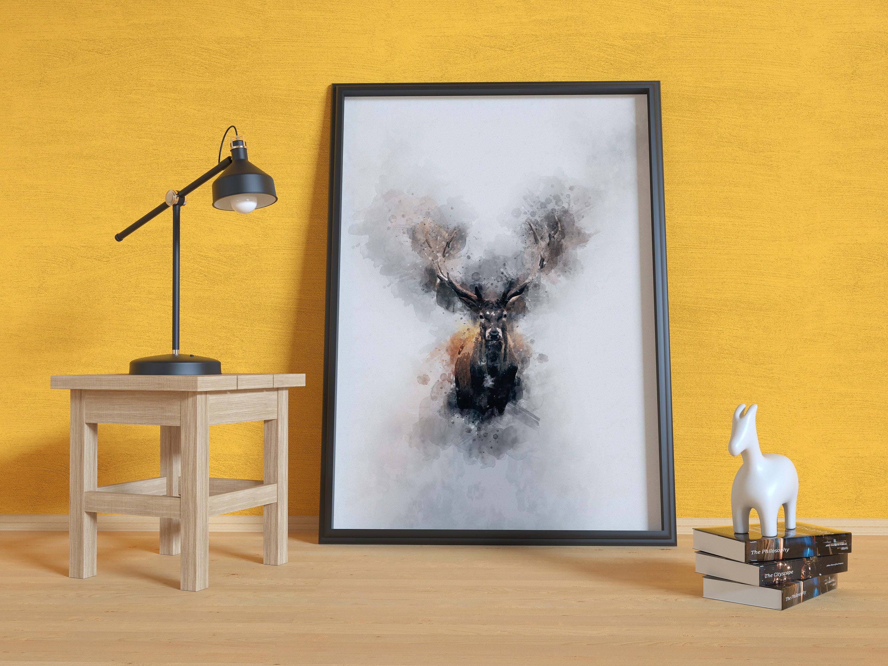 Design:> Made by spe3dy productions, one of a kind. Material:> Satin premium poster material 220 GSM / Mimaki original Eco Solv-Inks Art:> Real Deer aka " Cervidae " mixed with watercolour effect Art, unique and different.