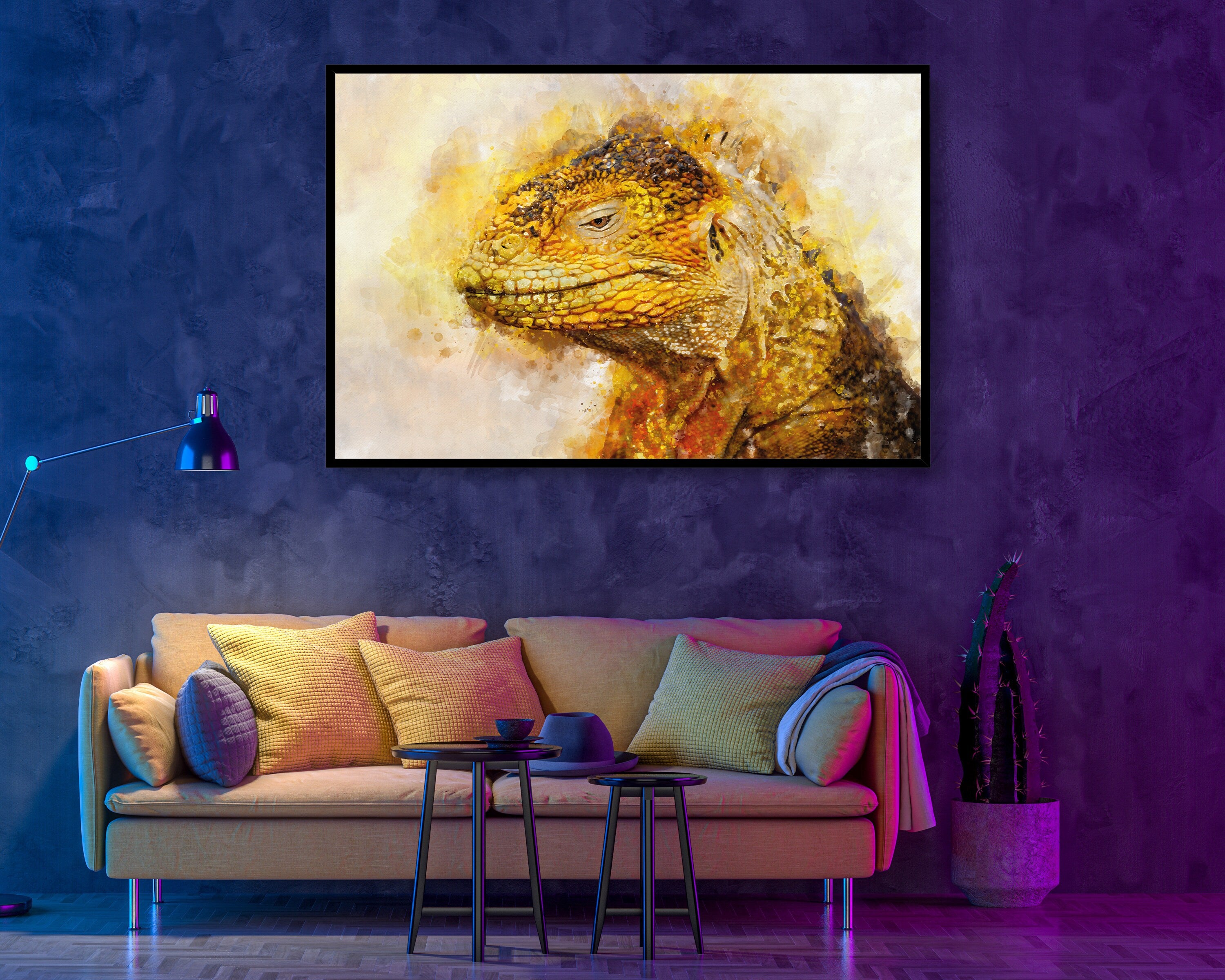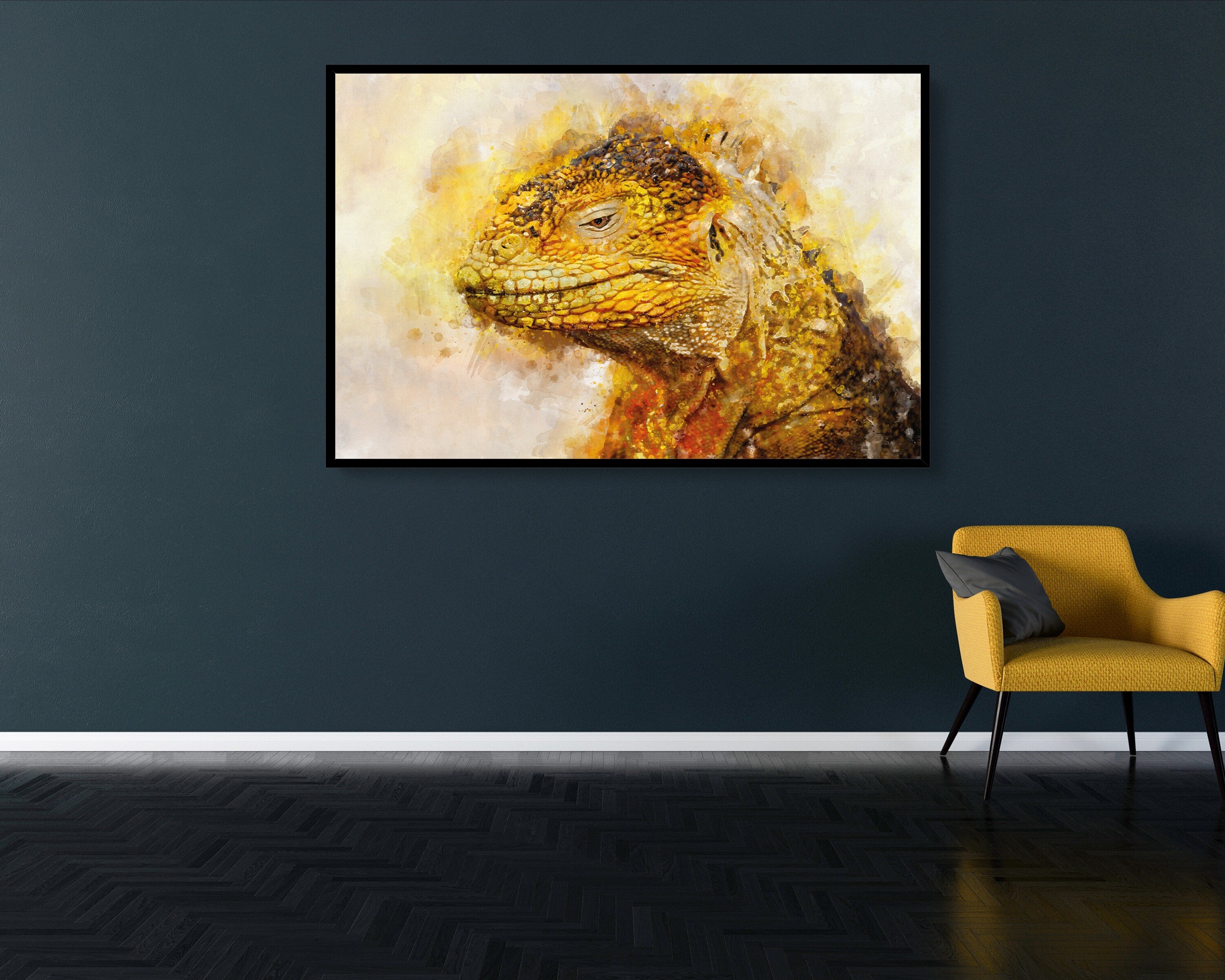 Design:> Made by spe3dy productions, one of a kind. Material:> Satin premium poster material 220 GSM / Mimaki original Eco Solv-Inks Art:> Real Dragon Lizard mixed with watercolour effect Art, unique and different.