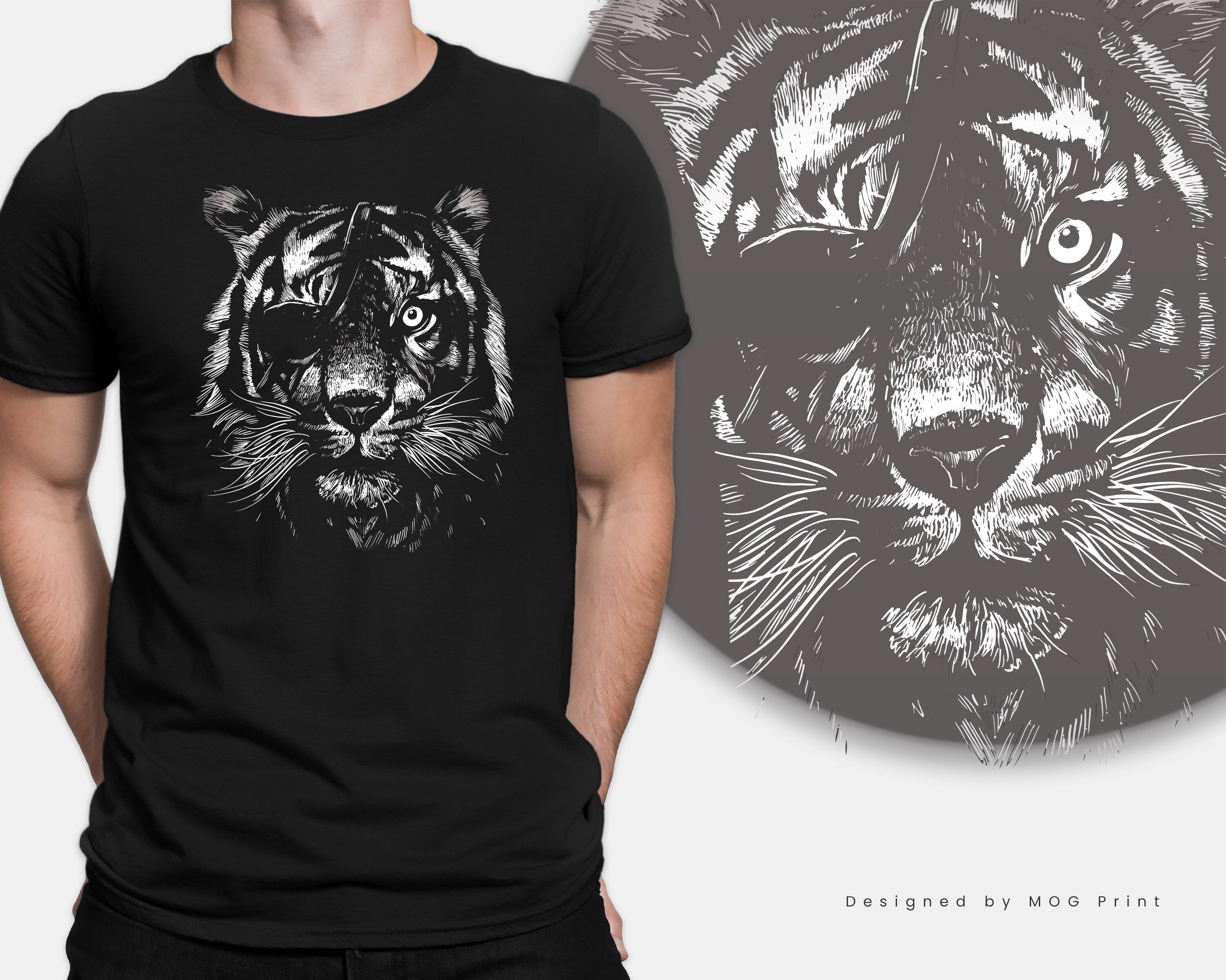 Wildlife Siberian Tiger Face T-Shirt Monochrome Animal Lovers Gift Tee